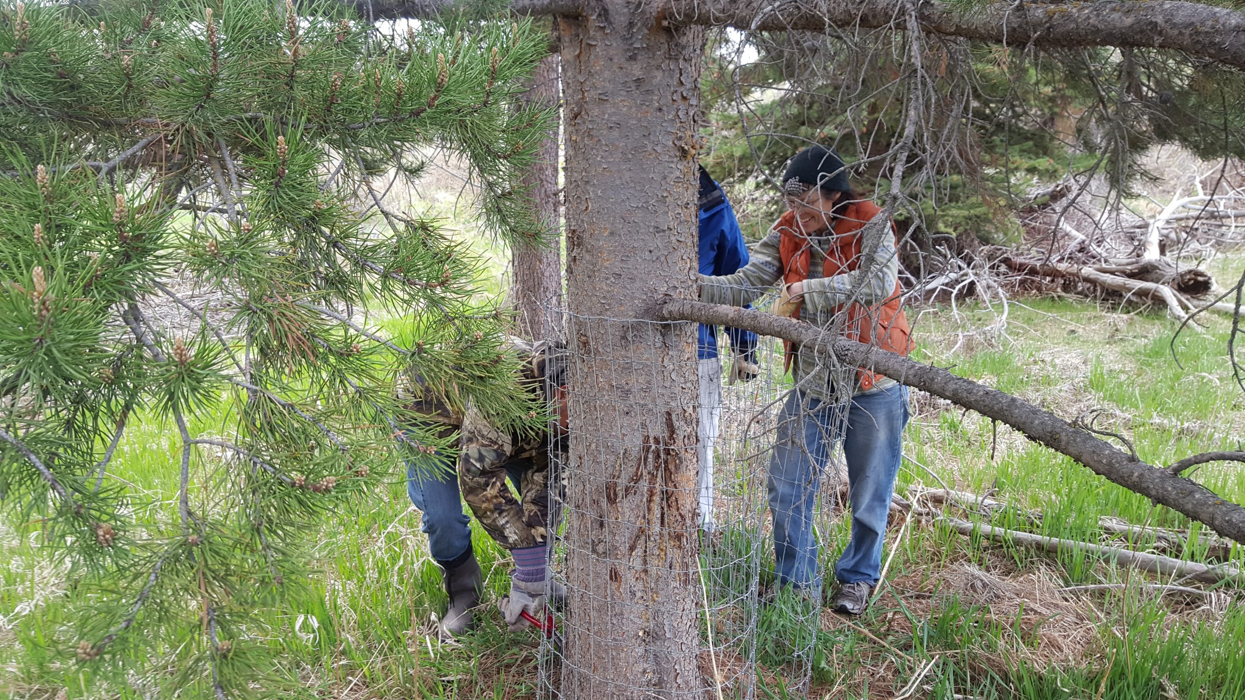 Dave Tall was contacted by Mike and coordinated a day for the project with Paula. HCFF purchased a roll of 4×4 stock wire and rounded up about seven volunteers. HCFF members worked on the project for a couple of weekends and successfully protected about forty trees by wrapping the trunks with wire wrap and plastic fabric.
